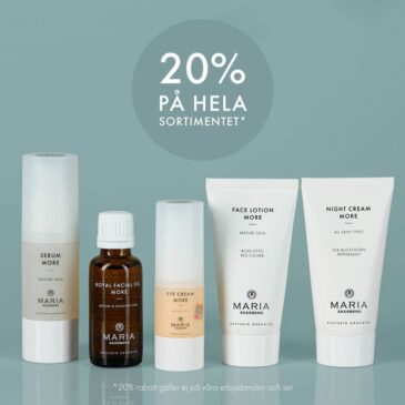 Passa på att fylla på med fina produkter från MARIA ÅKERBERG. 20 % rabatt på hela sortimentet (gäller ej erbjudanden och set). Priserna gäller från 23 augusti till 3 september … Läs mer»