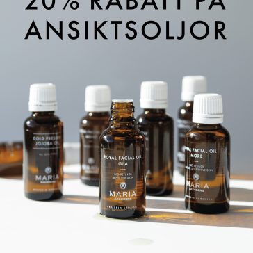 Dags att bygga upp huden med essentiella fettsyror inför vintern. Just nu är det 20 % rabatt på alla ansiktsoljor från MARIA ÅKERBERG. Min favorit är Royal Facial Oil More … Läs mer»